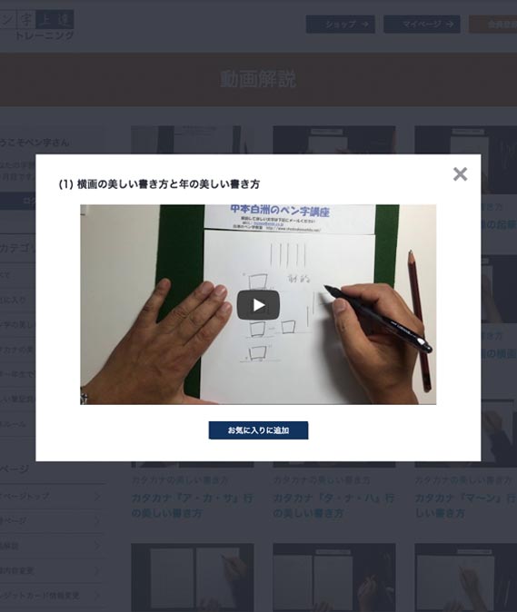 ショップページからペン字教材(動画解説付)を購入して学ぶ事が出来ます。