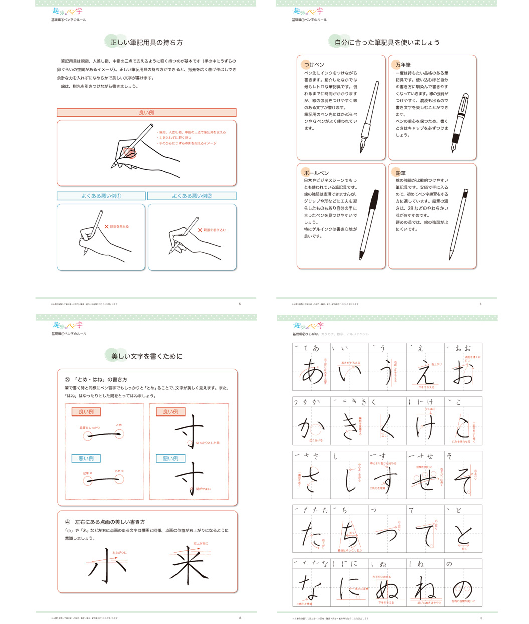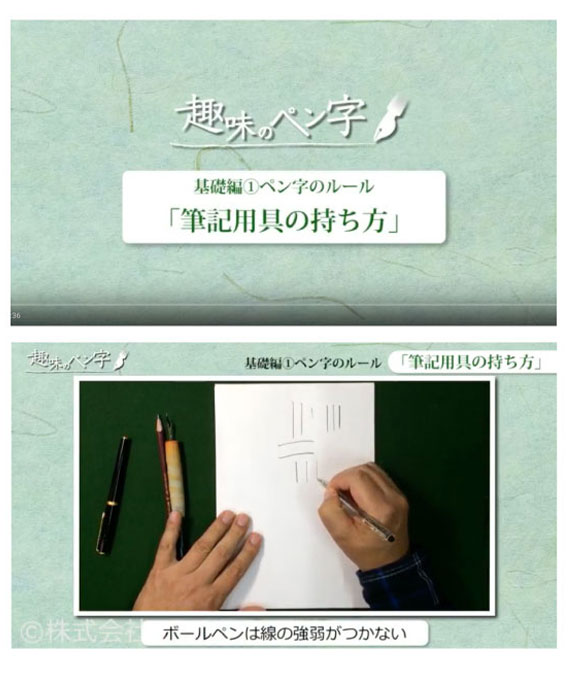 いままでのペン字練習教材では上達が感じられなかった人、教材がつまらなくて長続きしなかった人、これからペン字を学ぶ人へ。テキストと授業動画で学ぶペン字教材です。